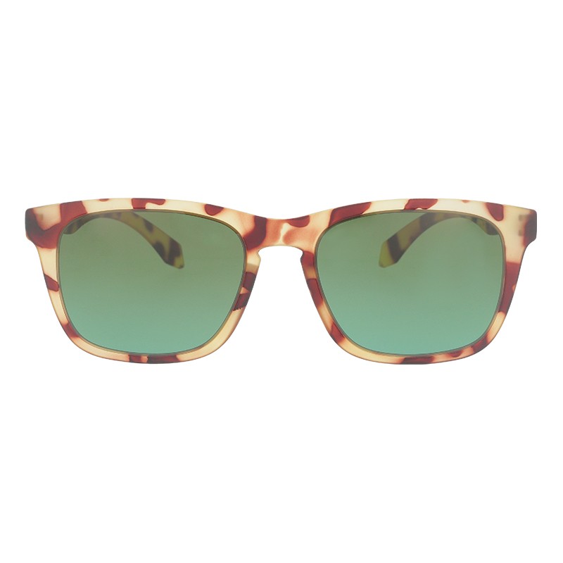 Unisex sport sunglasses with honey camo frame and polarised glass-green lenses.