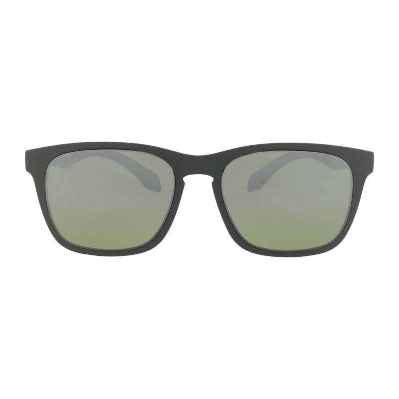 Unisex sport sunglasses with grey frame and grey mirrored lenses.
