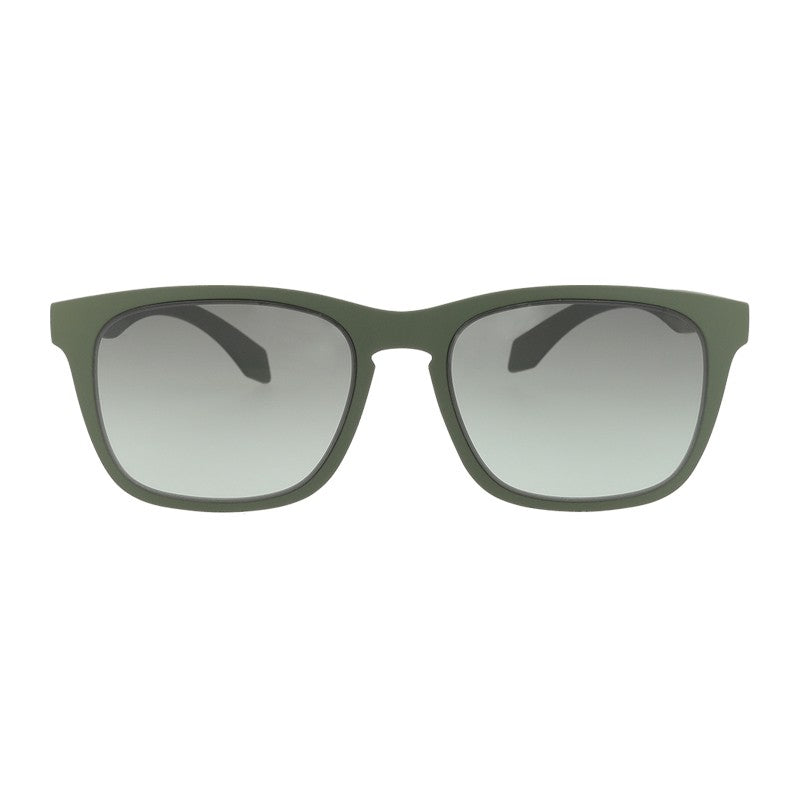Unisex sport sunglasses with military green frame and smoked gradient lenses.