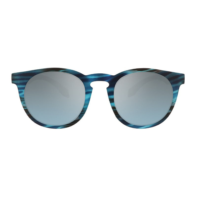 Unisex fashion sunglasses with light blue zebra frame and light blue lenses.